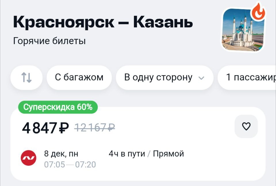 Даже такая Казань имеется. https://aviasales.tpm.lv/gwJXm163 #KZN @KJA