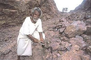 Индийский крестьянин Дашратх Манджхи (Dashrath Manjhi) принадлежал к низшей касте и жил в бедной деревушке, где не было даже больницы Прямой путь к цивилизации – соседнему городку – преграждала скалистая гора Была только дорога в обход, длинная и неудобная Как–то жена Дашратха, карабкаясь по горе, упала и получила серьезную травму Помощь вовремя оказать не смогли, и вскоре она умерла Крестьянин взял лопату, молоток и зубило и пошел прорывать дорогу в горе Каждый день он уходить долбить, копать, убирать камни (в некоторых источниках говорится, что он работал по вечерам, после работы в поле) Соседи называли его безумцем Местное правительство, погрязшее в лени и безденежье, пальцем не пошевелило, чтобы помочь У него ушло двадцать два года – с 1960–го по 1982–й, чтобы практически срыть гору и проделать в ней дорогу Теперь путь в городок стал занимать всего час пешком Вся Индия узнала о нем, как о «человеке, убравшем гору»