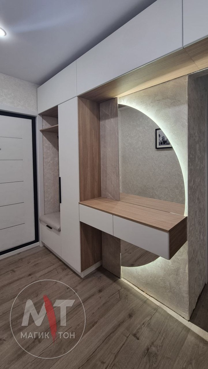 💥💥💥 Стильная прихожая для двушки КПД💥💥💥 Мы создали пространство, где современные тренды сочетаются с практичностью и элегантностью. Внимание к каждой детали позволило нам добиться идеального баланса между красотой и удобством. Что делает эту прихожую особенной? ⚡ Скрытый счетчик: Больше никаких неэстетичных элементов! Мы ловко спрятали счетчик от посторонних глаз, сохранив чистоту линий и приватность. 🛠 Функциональный пенал: Вместительный пенал с полками обеспечивает достаточно места для хранения обуви, аксессуаров и других необходимых вещей. 🌈 Элегантная панель с 3D-линиями: Плавный переход от пенала к панели с 3D-линиями цвета мрамора - это настоящее произведение искусства! Она добавляет текстуру и глубину интерьеру. 💡 Зеркало с подсветкой: Стильное зеркало с сенсорным управлением и подсветкой не только функционально, но и является ярким акцентом в прихожей. ☝ Доводчики: Забудьте о хлопках и скрипах! Все элементы прихожей оснащены доводчиками, обеспечивающими плавное