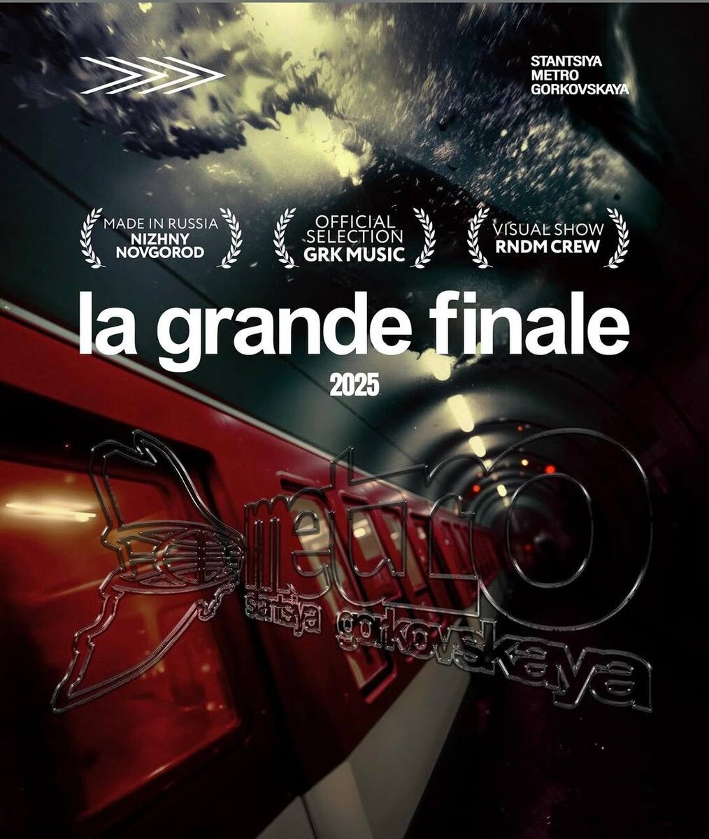 СТАНЦИЯ МЕТРО ГОРЬКОВСКАЯ LA GRANDE FINALE 2025 6 ДЕКАБРЯ – Н.НОВГОРОД, ЦЕХ * Отчетный концерт 2025: новый сетап, полномасштабная съемка и уникальное мультимедиа шоу, созданное совместно с RNDM CREW в рамках фестиваля New Star Weekend. 6 ДЕКАБРЯ мы представим вашему вниманию расширенную режиссерскую версию в стенах нашего отчего дома на Варварке. Это финальное, заключительное и кульминационное зрелище 2025. Кол-во билетов ограничено. DJ KRAS MAKS BUYAKOV ANTON BARDIN CAMZNAEW CALL ME ILYA BORIS REDWALL (new album) TOLIK IVANCHIKOV (light design) & GUESTS 🎟 METROGORKOVSKAYA.COM