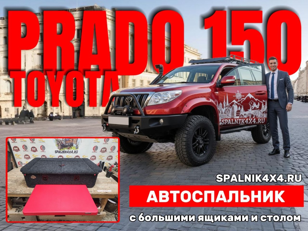 Toyota Prado 150 - автоспальник с большими ящиками и интегрированным раскладным столом