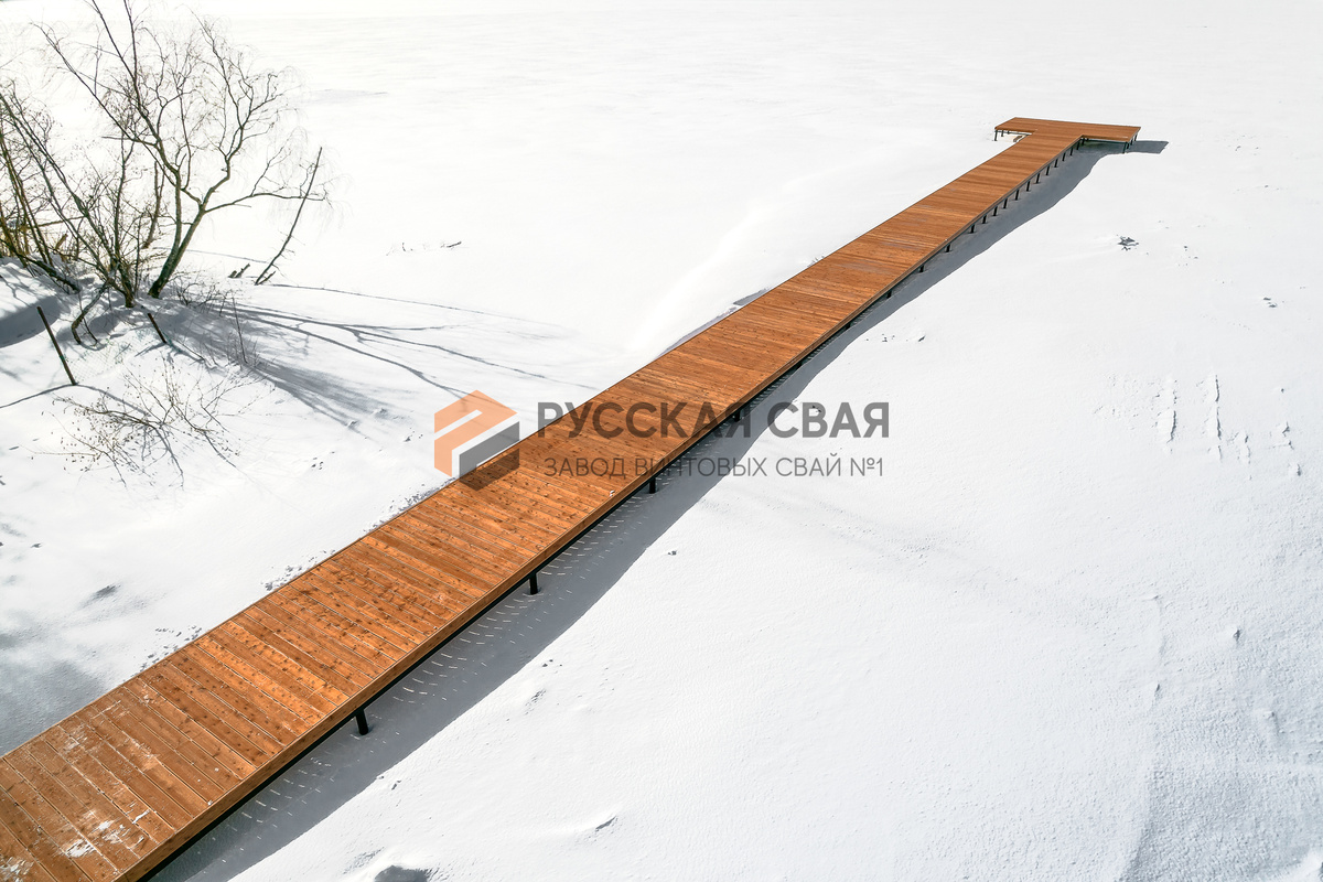- Откладывать строительство из-за зимы. На самом деле, лед создает естественную рабочую площадку для монтажников, особенно при установке винтовых свай. Зимой можно обойтись без понтона, сложной техники или рискованных манипуляций с берега. А значит — снизить стоимость проекта.