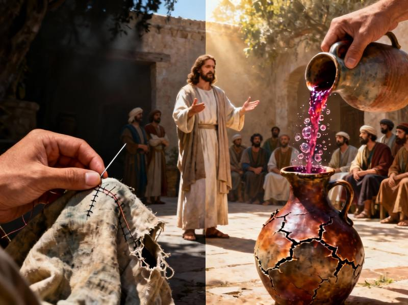 Атмосфера в Капернауме накалялась. Каждое новое действие Иисуса вызывало споры и вопросы. После пира в доме бывшего мытаря, где радость прощения царила, наступил день, омрачённый строгим соблюдением по преданиям учителей закона. Действие переносится с богатого дома Левия на открытое место. Возможно, это был двор или городская площадь. Иисус, окружённый учениками, продолжал учить народ. Воздух свежий, солнечный свет освещал лица людей, а дорожная пыль медленно оседала на одежде. Приходят к Нему и спрашивают: почему ученики Иоанновы и фарисейские постятся, а Твои не постятся? Вопрос задала группа людей, вероятно, последователей аскетизма и ревнители фарисейского благочестия. Их лица были строгими. Пост для них был не просто обрядом, а знаком скорби, покаяния и отделения от греховного. Они смотрели на учеников Иисуса, не видевших на лицах печати поста, и это их возмущало. В их глазах читался упрёк: «Раз Ты — Учитель от Бога, почему Твои последователи нарушают традиции?» Иисус, зная чел