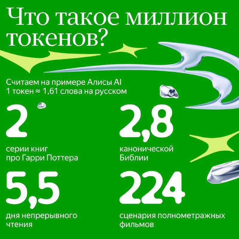 Компании в сфере искусственного интеллекта обычно озвучивают стоимость использования своих нейросетей (API) в миллионах токенов. Но что это значит на практике? Мы проанализировали, сколько страниц это соответствует по сравнению с «Гарри Поттером», Библией и сколько дней чтения можно провести, используя, например, Алису AI.