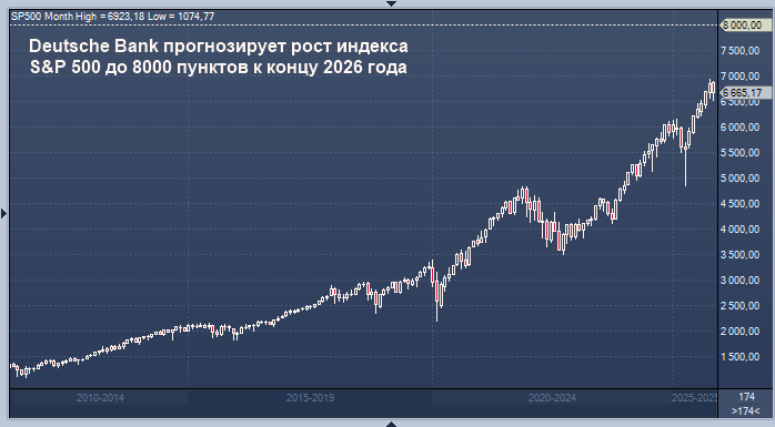 Deutsche Bank прогнозирует рост индекса S&P 500 до 8000 пунктов к концу 2026 года