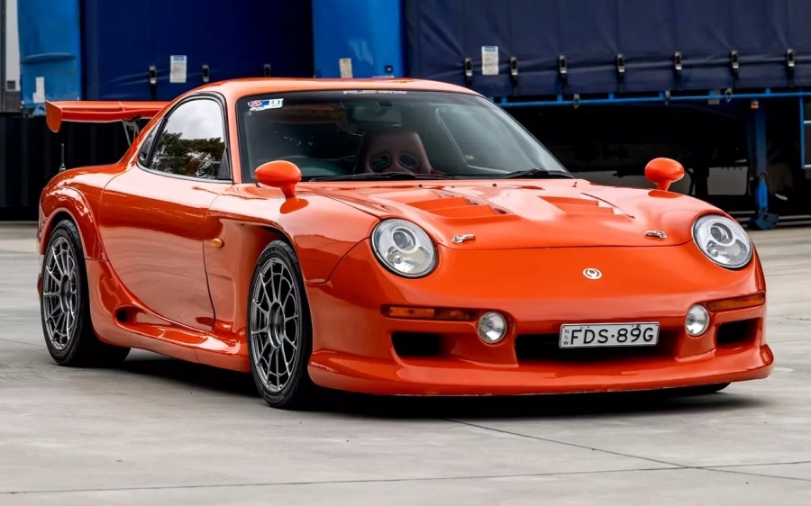 В конце 1991 года Mazda представила третье поколение RX-7 серии FD — автомобиль с дизайном, который не подвластен времени. Спустя более трёх десятилетий этот силуэт всё так же привлекает внимание, и рынок коллекционных машин регулярно это подтверждает. Но не каждая RX-7 вызывает ажиотаж на аукционах. Недавно один такой автомобиль так и не нашёл покупателя — возможно, потому что выглядит совсем не так, как обычный RX-7. Этот экземпляр, продававшийся в Австралии, получил обвес RE-Amemiya AC987. Он настолько радикален, что многие автолюбители с трудом узнают в машине RX-7. Спереди исчезли привычные поднимающиеся фары — вместо них установлены блоки в стиле Porsche 911. Спереди также появился новый бампер и вентилируемый капот, улучшающий охлаждение моторного отсека. В духе JDM зеркала перенесены с дверей на передние крылья. В комплект обвеса входят также пороги, накладки на задние крылья, антикрыло и иная корма с новым бампером и фонарями. Получившийся образ, безусловно, выделяется. Наскол