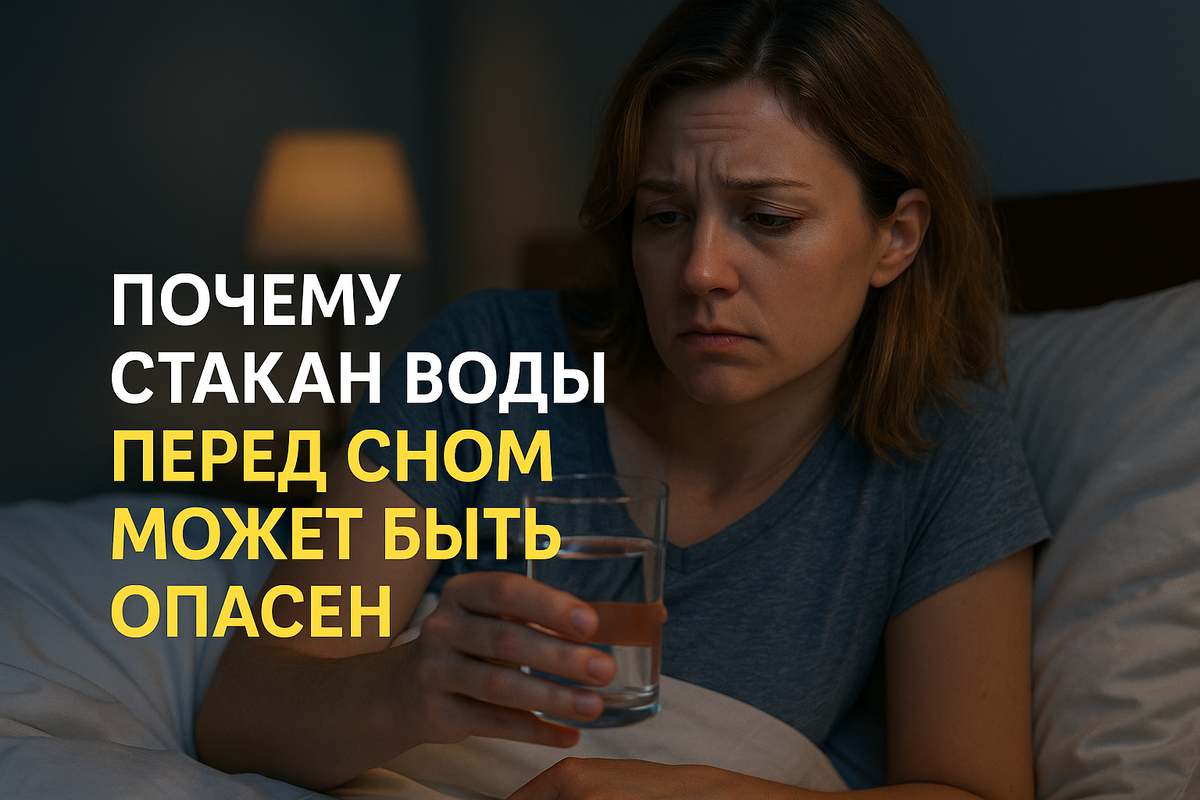 Вода нужна каждый день, но не обязательно прямо перед сном. Поздний стакан часто оборачивается ночными походами в туалет, рваным сном и риском падений у пожилых. У людей с рефлюксом может усилиться изжога, а при сердечной или почечной недостаточности лишняя жидкость вечером перегружает организм. Редко, но бывает и гипонатриемия на фоне чрезмерного питья. Решение простое: пить достаточно в течение дня и смещать основную жидкость на первую половину суток. (pmc.ncbi.nlm.nih.gov)