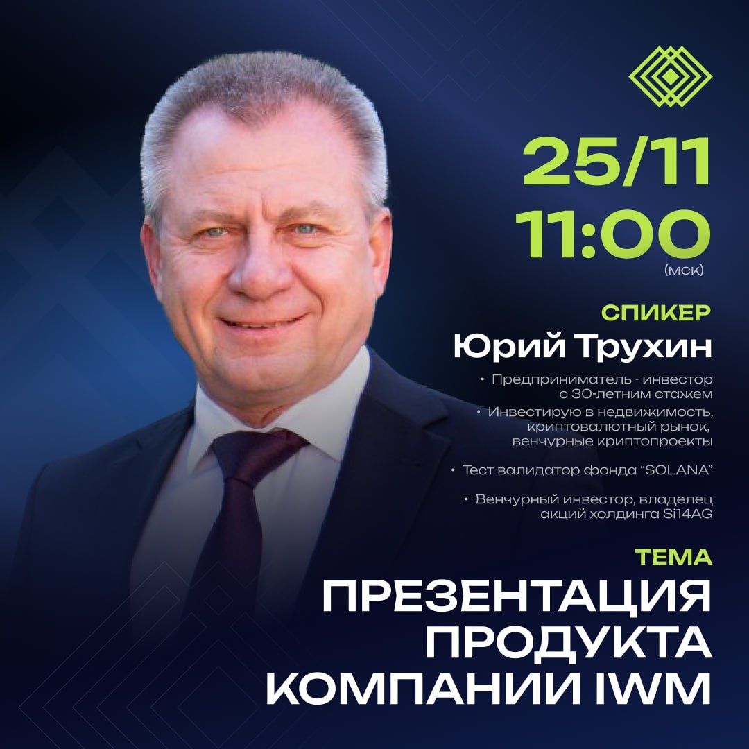 📣🗓25 НОЯБРЯ. ПРЕЗЕНТАЦИЯ ПРОДУКТА КОМПАНИИ IWM. Юрий Трухин! Приглашаем Вас на эксклюзивную презентацию продукта компании IWM, где время, посвященное развитию, будет вознаграждено ценными знаниями. 25 ноября, в 11:00 по московскому времени, в рамках виртуальной встречи в ZOOM, Юрий Трухин – уважаемый лидер IWM, эксперт с богатым опытом – представит Вам перспективы, которые открывает сотрудничество с нами. Познакомьтесь с миссией, ценностями и стратегическим видением компании, которые определяют наш вектор развития. И, конечно, узнайте все о ПРОДУКТЕ IWM! Приглашаем Вас провести время с пользой и сделать уверенный шаг к новым достижениям. Время: 11:00 МСК Спикер: Юрий Трухин, лидер IWM Формат: ZOOM Будем рады видеть Вас среди участников. Ссылка для подключения: https://us06web.zoom.us/j/2116731674?pwd=xahqmhZLmGsNMAcfVYG8sNdiNWlLRY.1