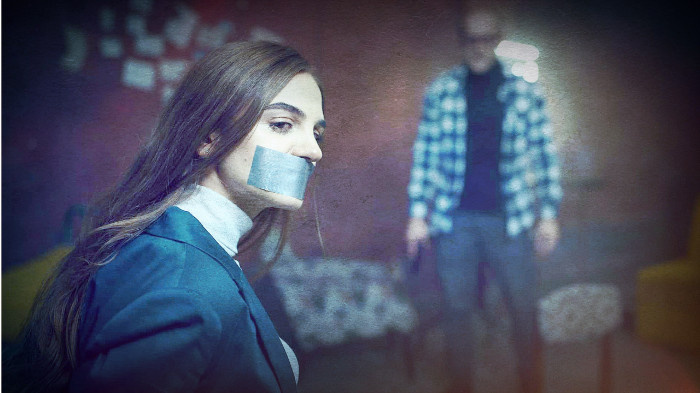 Вероника сидела на стуле, который стоял посреди пустой, темной комнаты. Руки и ноги девушки были связаны скотчем, а во рту находился кляп. Лицо было заплаканным, а на лбу - огромная ссадина до самой брови. Ника извивалась на стуле и мычала, не в силах вытолкнуть кляп изо рта.