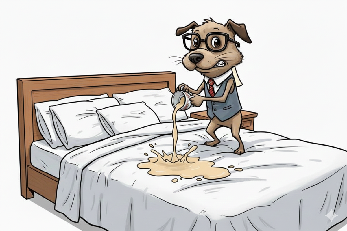 Итак, лужа на кровати - это не про месть, ревность и другие собачьи умыслы. И даже не про метки. Чаще всего это про здоровье, физиологию, рефлексы, привычку и комфорт. А потому работать нам нужно в направлении ветеринарного лечения, организации стабильного выгула, выстраивания правильного отношения с собакой, стабилизации ее состояния и формирования нужных нам поведенческих стереотипов. Собака не делает «лужу на кровати», чтобы устроить тебе «перформанс». Чаще всего она просто сигналит: «что-то не так» — со здоровьем, с эмоциями или с распорядком. Твоя задача — посмотреть, услышать и помочь, а не устраивать суд присяжных на диване. Наказания отменяются, ограничения приветствуются. Дерзай, собаковод!