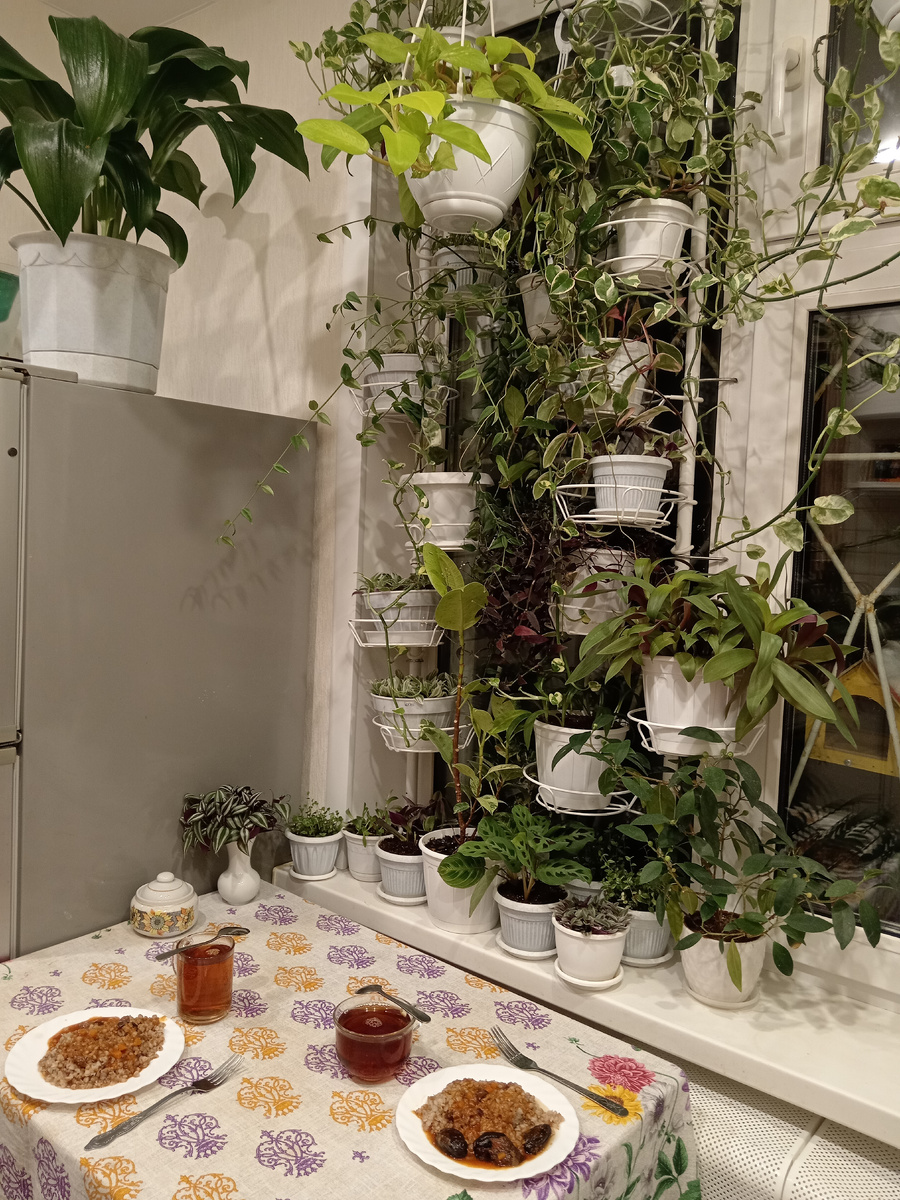 6:55 на часах и начало рабочей недели на календаре. Настрой бодрый. Полна энергии после выходных. Как и должно быть у всех нормальных людей, если не болеешь. -5° С температура воздуха на улице. Пока чайник тихонько пулькался пузырьками, была в раздумьях по поводу завтрака. На завтрак гречка и тушёное мясо с черносливом. Все выходные этот глиняный горшочек ели, ели, ели. Горшочек волшебный, прям как в сказке у братьев Гримм. Чай заварила со смородиновыми веточками, предусмотрительно нарезанными в выходные. Душистый чай утром - это очень вкусно и приятно. 7:50. Всё крыльцо и рядом посыпано солью. Так дворник Серёжа борется с гололёдом и нашей обувью. Успешно и первом, и во втором случае. Помахала ему рукой приветливо. В ответ дружелюбно потряс лысой метлой. 8:00. В офисном здании довольно мрачно и душно. Это обычное состояние после выходных. Распахнула раму настежь. Вдарила по фонарям. И жизнь заиграла новыми красками и запахами. Рабочее утро делаем своими руками. На рабочем месте за