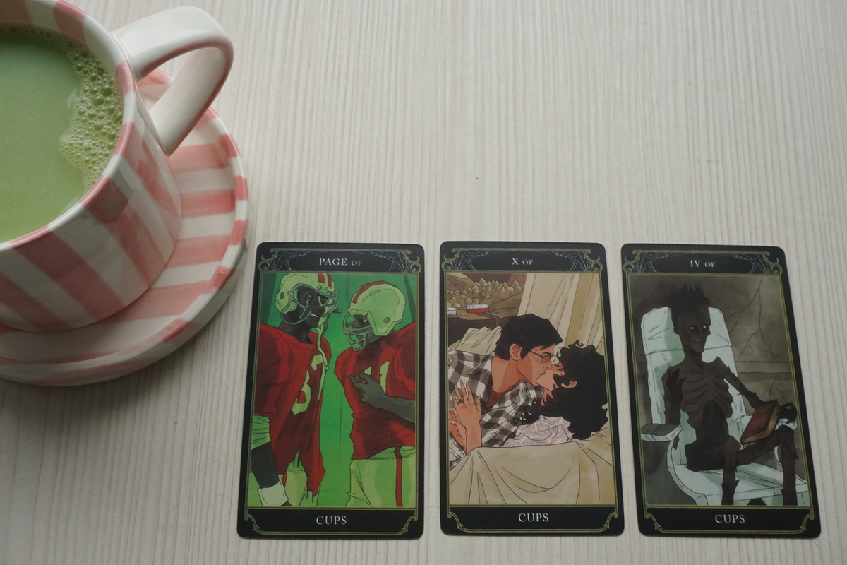 Паж кубков — Десятка кубков — Четвёрка кубков