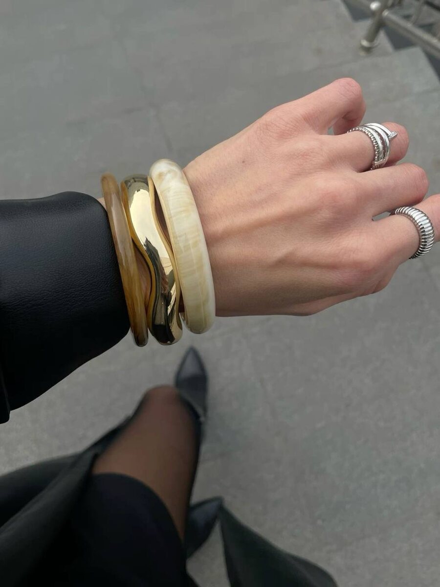 Массивные браслеты✨ Если любите акценты в образе (особенно на тонких частях тела), то массивные браслеты - это то, что вам нужно🤩 Не бойтесь носить несколько массивных браслетов одновременно на одной руке❤️🔥 Особенно классно выглядит микс браслетов из металла и акриловой смолы!) И да! Их можно внедрять в осенне-зимние образы! Получается интересный контраст, который привлекает внимание🙌🏼 Как вам❓ Еще про украшения: 👉🏼Акцентные серьги 👉🏼Чокер-цветок 👉🏼Сотуар 👉🏼Цветы в волосах 👉🏼Броши ❤️🔥Все посты со стилистическими фишками вы найдете по тегу: #MLстилистическиеприемы
