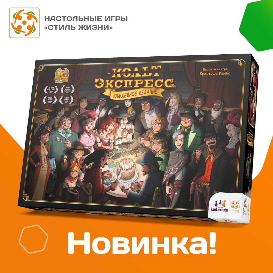 Друзья! Любимой многими настольной игре "Кольт Экспресс" исполнилось 10 лет! Мы не могли пропустить такое знаменательное событие, и подготовили для вас особенное юбилейное издание! ⭐️ Кольт Экспресс: Юбилейное издание уже в предзаказе! Поезд несется по пыльной прерии, и на его крыше уже видны тени отчаянных головорезов. Ветер треплет одежду, а в висках стучит адреналин. Сегодня здесь соберутся все самые известные личности Дикого Запада, чтобы отпраздновать десятилетие самого дерзкого ограбления в истории. Однако юбилей не время для безмятежности. В вагонах по-прежнему звенит золото, бдительный шериф не сводит глаз с каждого, а новые бандиты уже готовы встряхнуть привычный ход стремительного налета, добавив еще больше непредсказуемости и азарта. ⭐️ В этой коробке вас ждет не только базовая игра, но и совершенно новое дополнение "Юбилей", свежие игровые механики и обновленные компоненты. Дополнение "Юбилей" добавит: два дополнительных вагона со своими специальными эффектами. Двух но