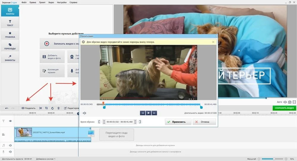 Скачайте Экранную Студию бесплатно, чтобы редактировать только что записанные ролики или готовые видеофайлы.