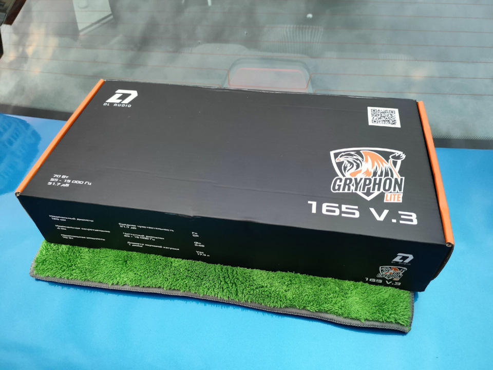 Всем привет! Сегодня будет небольшой пост про замену акустики в задней полке моего авто. В какой-то момент я понял, что колонки с озона за 1000р, которые стояли по принципу «лишь бы было» ну не играют от слова совсем и приходится выкручивать магнитолу до предмаксимальных значений. Решив, что так дело не пойдет и озадачившись вопросом замены по принципу «дешево и сердито» первым делом вспомнил про DL Audio. Поскольку от автозвука я отошел лет 10 назад и в последнее время слушал исключительно коаксиалы, для знакомства с эстрадной аккустикой был приобретен бюджетный комплект Gryphon Lite 165 V.3, т.к. хотелось уйти от штатного 13ого размера + у данного комплекта заявлен довольно некислый, для ценника в 2690 деревянных, частотный диапазон в 55 — 15 000 Гц. Определившись с выбором, делаем заказ и ждем посылку. Спустя 3-4 дня получаем вот такую коробку с вот таким содержимым. Внутри нас встречает гарантийник, 2 наклейки и пахучка, а также сами колонки. Прощелкав момент с отсутствием в ком