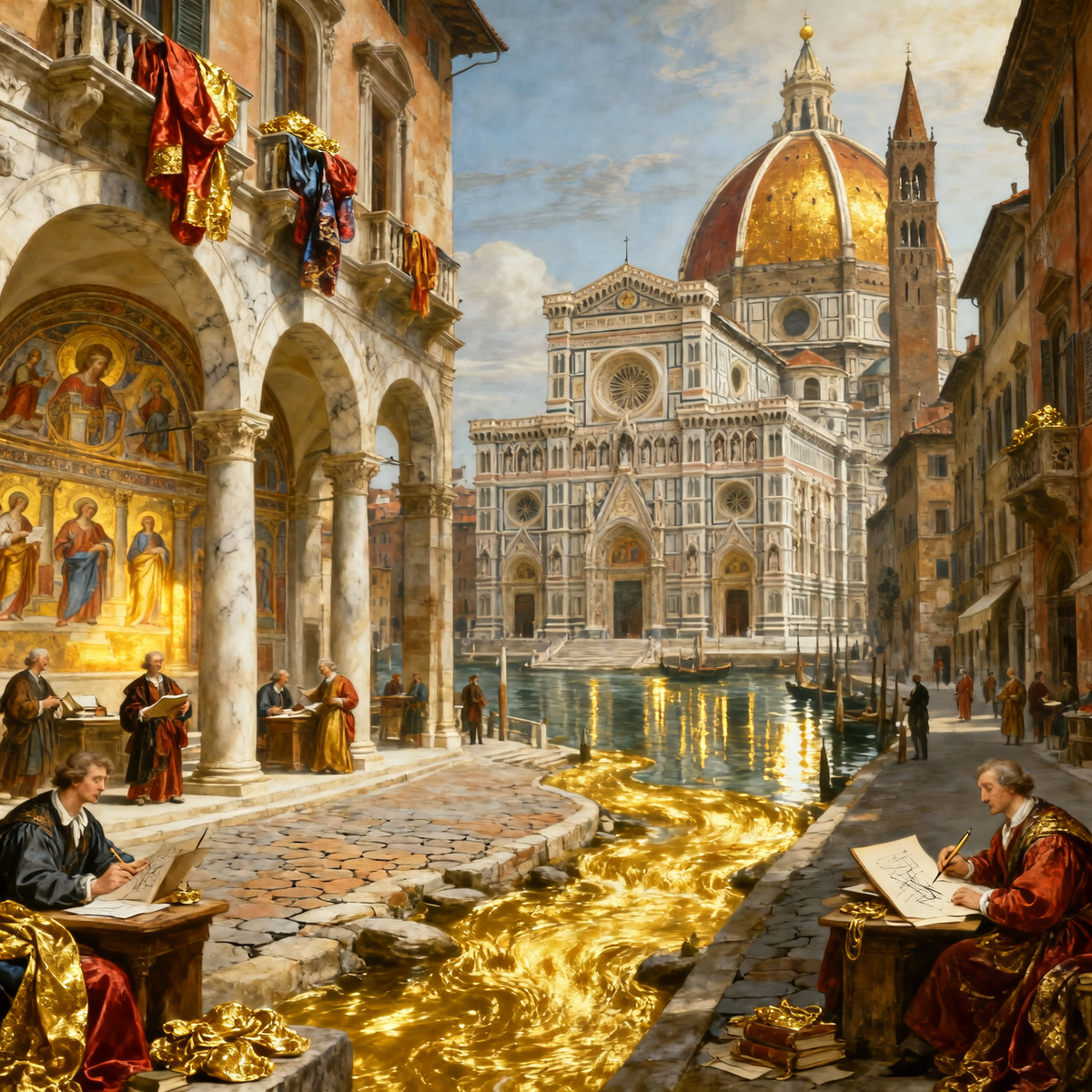 Богатство, текшее рекой по этим финансовым артериям, питало не только кошельки, но и умы. К XIII веку северная Италия стала самым грамотным обществом со времен падения Рима. Здесь писали не только на латыни, но и на народном языке, здесь «Книга абака» Леонардо Фибоначчи учила купцов применять математику в коммерции, а труды Луки Пачоли заложили основы современного бухгалтерского учета. Процветание рождало уверенность, а уверенность — тягу к прекрасному. Соборы в Пизе, Сиене и Флоренции, дворцы дожей в Венеции, фрески Джотто — все это было зримым воплощением успеха, триумфом земного мира, который уже не желал довольствоваться ролью лишь преддверия мира небесного.