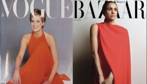 На одном из кадров Меган сидит на кресле, слегка наклонив голову, и улыбается в камеру. Этот кадр почти точная копия знаменитого портрета Дианы. Отличие лишь в современных деталях одежды и аксессуарах — отдают дань времени, но композиция идентична.