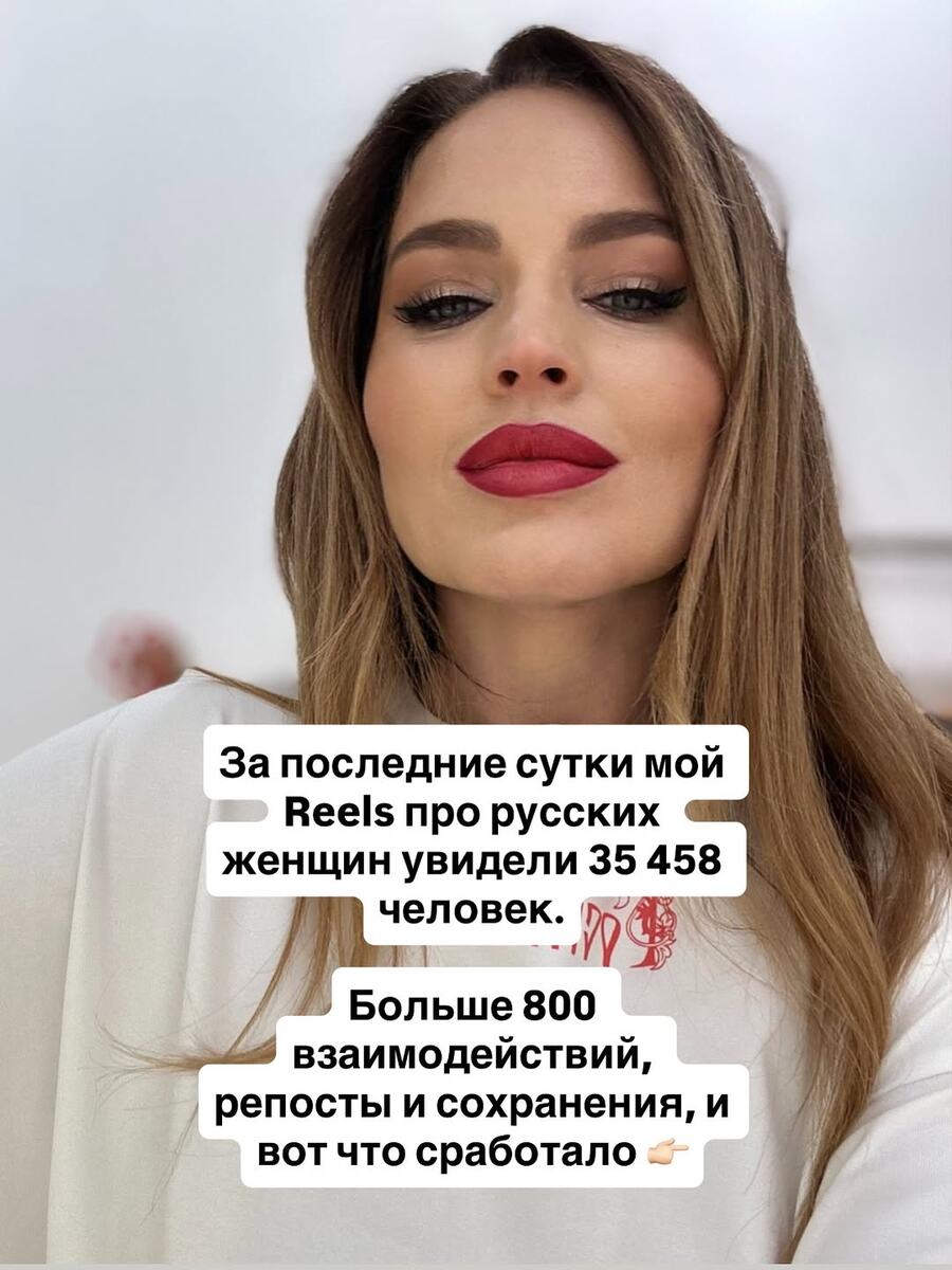 Сохраняйте шпаргалку, как повторить рилс, который набирает охваты. Получить вирусного ИИ-ассистента можно в моем телеграм-канале в закрепленных сообщениях https://t.me/+nz6jnx96iTBkYjcy ❤️ А сам ролик, который я разбираю, можете посмотреть по ссылке: https://dzen.ru/shorts/6924472c107d534395c16d26 В России женщин больше. Гораздо. И мы растём в условиях такой конкуренции, что у нас, девочки, как в бизнесе: ниша перегрета, рынок перенасыщен, требования высокие, и поэтому продукт… ну, сами понимаете… лучший в мире. Русская женщина — это результат естественного отбора в условиях жесткого рынка. Мы одновременно красивые, смешные, умные, умеем работать, готовить, строить карьеру, хозяйничать, собирать мебель, поддерживать разговор, обнимать так, что снова хочется жить… и всё это — даром и круглосуточно. В моей крови татары, башкиры, русские и даже 4% финнов. Год назад я развелась и уехала путешествовать. Иностранцы знакомятся, падают в обморок от набора компетенций и спрашивают: «Это вообще