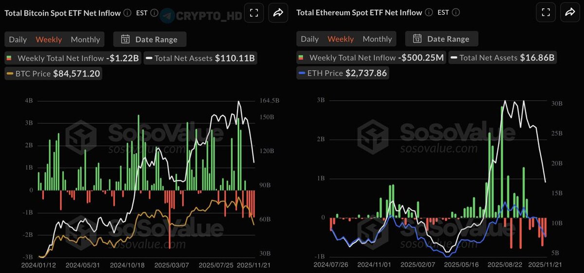 🫢 Из Bitcoin ETF чистый отток денег за прошлую неделю составил $1,220,000,000 (SV