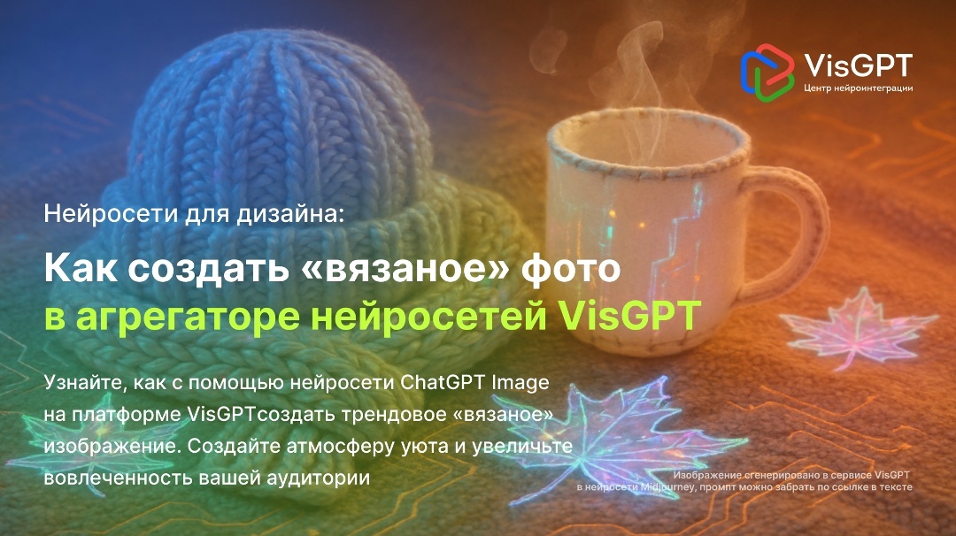 Узнайте, как создавать «вязаные» визуалы с помощью нейросети ChatGPT Image в VisGPT. Такие изображения усиливают индивидуальность бренда, формируют уютную атмосферу и повышают вовлеченность. В статье — готовый промпт для генерации и способы применения «вязаных» креативов без сложного продакшна. В современном digital-маркетинге борьба за внимание становится все более острой. На фоне ярких рекламных материалов пользователи обращают внимание на креативы, вызывающие доверие и теплые ассоциации. Особую популярность приобретают изображения с «вязаной» фактурой, которые создают атмосферу уюта и эмоциональный отклик у аудитории. Для генерации подобных изображений не требуется опыт профессионального дизайнера или специальное оборудование. Достаточно зарегистрироваться в агрегаторе VisGPT и воспользоваться нейросетью ChatGPT Image. Платформа объединяет более 50 нейросетей в одном сервисе, поддерживает оплату в рублях и предоставляет легальный доступ к зарубежным ИИ. Такой подход удобен для руков