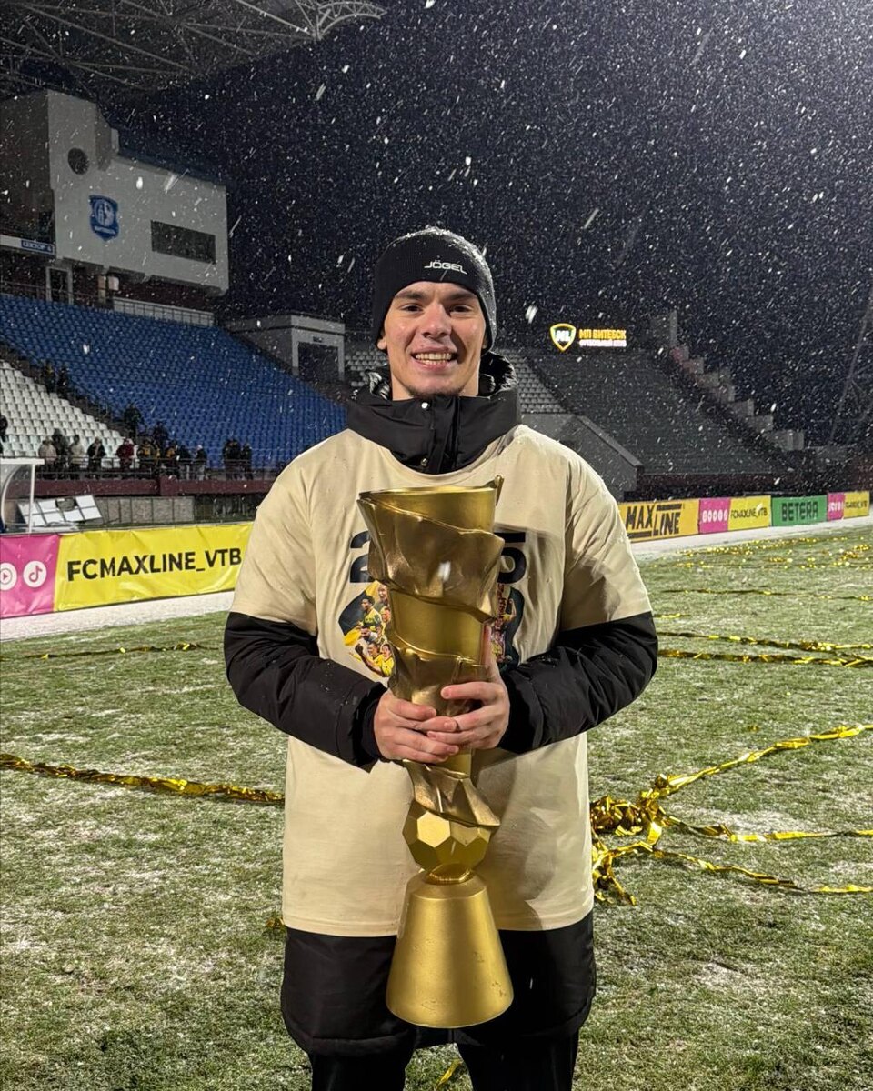 НАШ ЧЕМПИОН 🏆 Абу-Саид Эльдарушев стал чемпионом Беларуси в составе «МЛ Витебск»! В 29-м туре высшей лиги страны его команда дома обыграла «Гомель» со счётом 5:0 и стала недосягаема для конкурентов в борьбе за золото. Абу-Саид положил начало разгрому, забив в ворота соперника с пенальти на 27-й минуте. Всего же в чемпионском матче арендованный Балтиец провёл на поле 71 минуту. Поздравляем Абу-Саида со вторым высоким достижением в этом году!