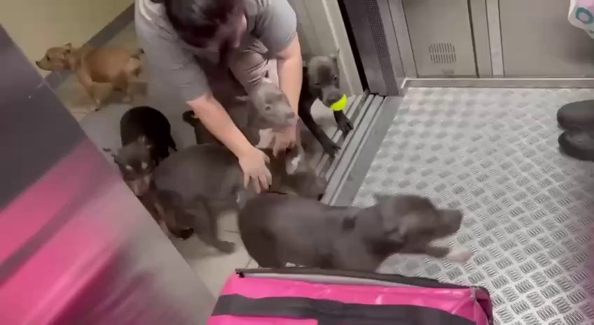 🛵В Питере на курьера набросилась стая бойцовых собак, курьер потерял дар речи и приобрёл порцию умиления на целый день