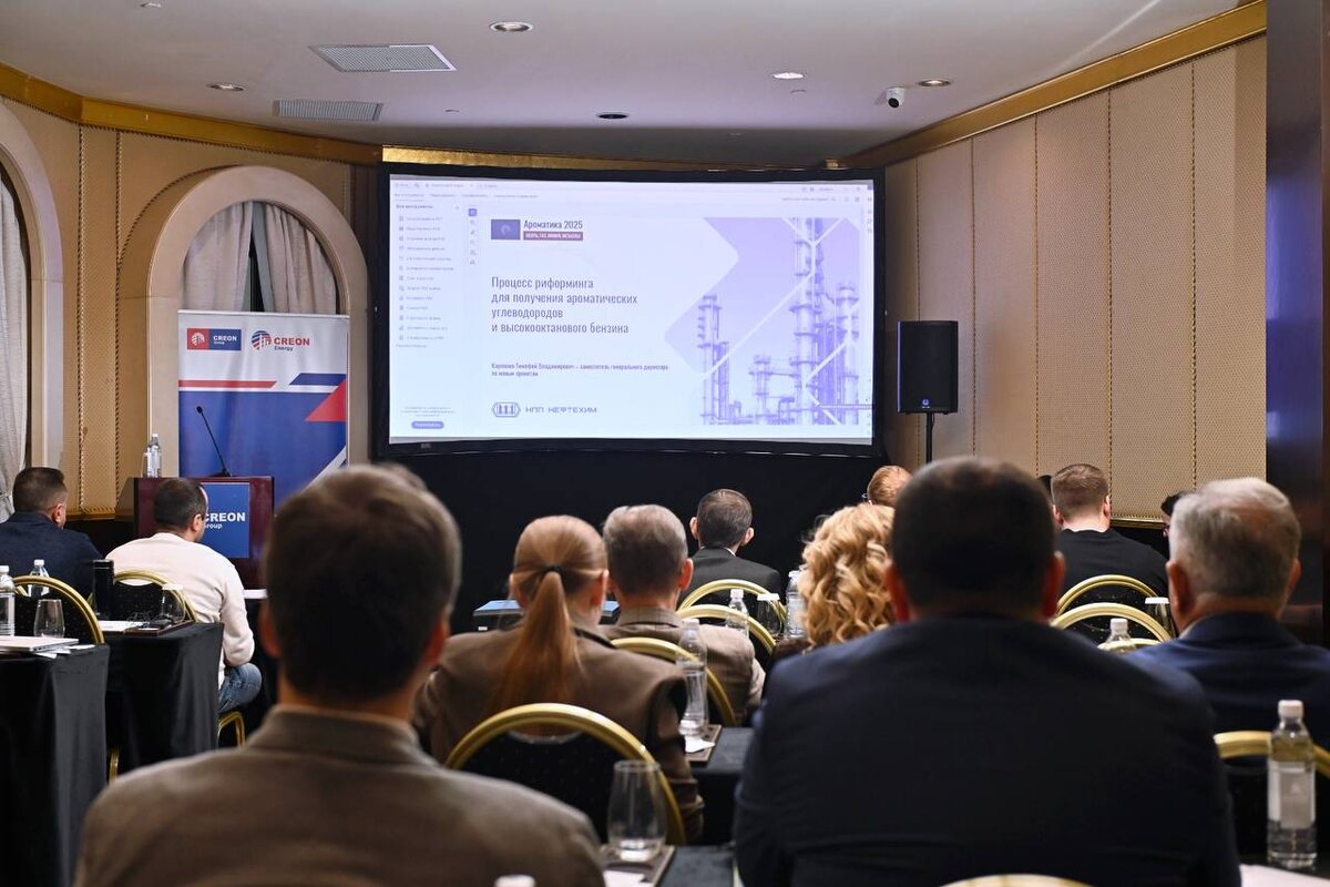 Тимофей Карпенко, заместитель генерального директора по новым проектам НПП Нефтехим, рассказал на конференции CREON «Ароматика» о процессе риформинга со стационарным слоем катализатора для получения ароматических углеводородов и высокооктанового автомобильного бензина. С 2023 г. НПП Нефтехим выпускает катализаторы серии REF нового поколения, а в 2024 г. осуществило замену катализатора на одной из установок Славнефть ЯНОС. Риформинг бензиновых фракций с непрерывной регенерацией катализатора обеспечивает совместимость с большинством промышленных катализаторов НРК. НПП Нефтехим осуществляет замену катализатора НРК «на лету»: без останова установки и с малыми затратами времени и ресурсов. НПП Нефтехим осуществляет полный цикл технического обслуживания: от разработки документации для пуска и эксплуатации до консультирования, шеф-контроля и аналитического контроля ответственных операций, а также поддержки при эксплуатации.