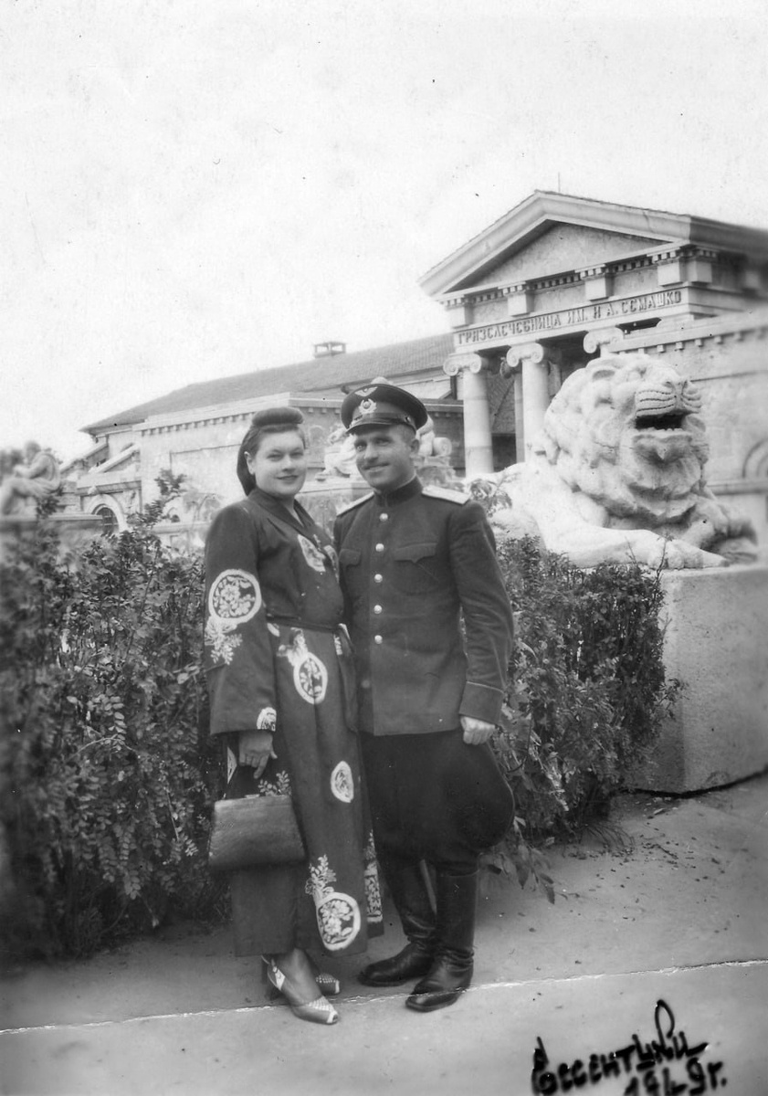 Офицер в шерстяном кителе с воротником стойкой и съемными повседневными погонами обр. 1946 года. Источник: отсканированная фотография из личной коллекции. #фото #ВВС #офицер #Есентуки #Советская_армия