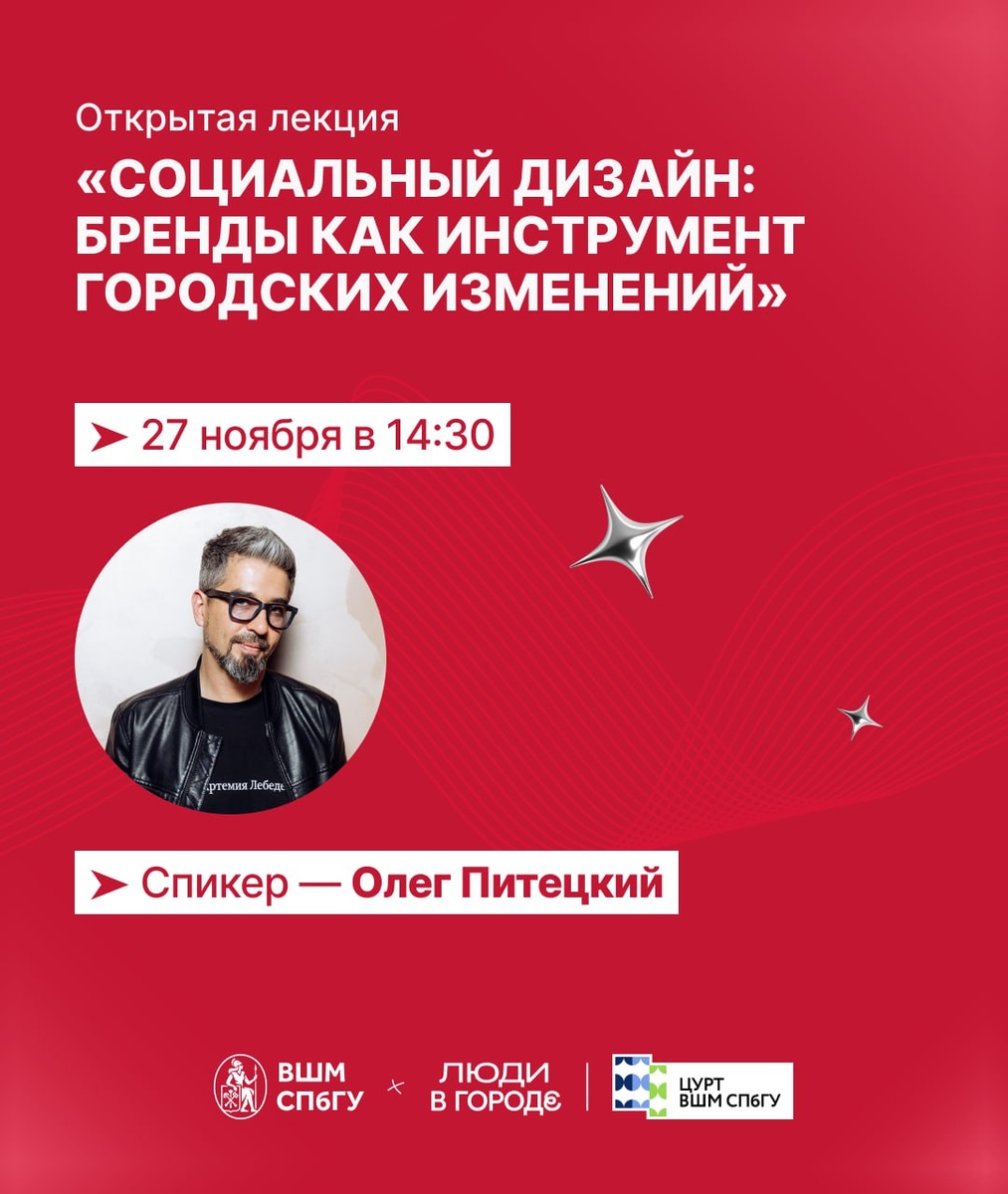 📢 Почему одни города притягивают таланты и инвестиции, а другие — нет? Как «характер» места влияет на его развитие? И главное — как понять, для кого мы строим город и какие смыслы нужны людям сегодня? ✔ Приглашаем разобраться в этом вместе с экспертом Олегом Питецким. На лекции мы посмотрим на развитие территорий через призму смыслов, ценностей и коммуникаций, а не только инфраструктуры. Что обсудим: ➡ Новые методы исследования горожан: не как статистику, а как живые социальные группы. ➡ Социальную инженерию в урбанистике: как создавать востребованный городской продукт. 💬 Спикер: Олег Питецкий — проектный лидер-управленец, визионер пространственного развития и драйвер креативной экономики; специалист с более чем 25-летним опытом в маркетинге, урбанистике и бренд-коммуникациях; модератор и эксперт РКН, НЦ «Россия», Арт-школ Тавриды и программ Росмолодёжи. 📆 Когда: 27 ноября, 14:30 – 16:00 📍 Гибридный формат: очно в кампусе «Михайловская дача» и онлайн 🔗 Регистрируйтесь по ссыл