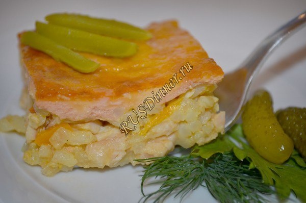 Рисовая запеканка с грудинкой и помидорами Ингредиенты: Рис - 120 гр. Бульон куриный - 200 мл. Молоко - 100 мл. Куриная грудка копченая - 200 гр. Помидоры - 150 гр. Перец болгарский - 150 гр. Лук репчатый - 1 шт. Чеснок - 3 зуб. Сыр - 100 гр. Яйцо - 2 шт. Масло оливковое - 30 мл. Приправа Карри - 5 гр. Перец черный молотый - 5 гр. Соль - 5 гр. Томатная паста - 50 мл. Источник: https://rusdinner.ru/page/risovaja-zapekanka-s-grudinkoj-i-pomidorami