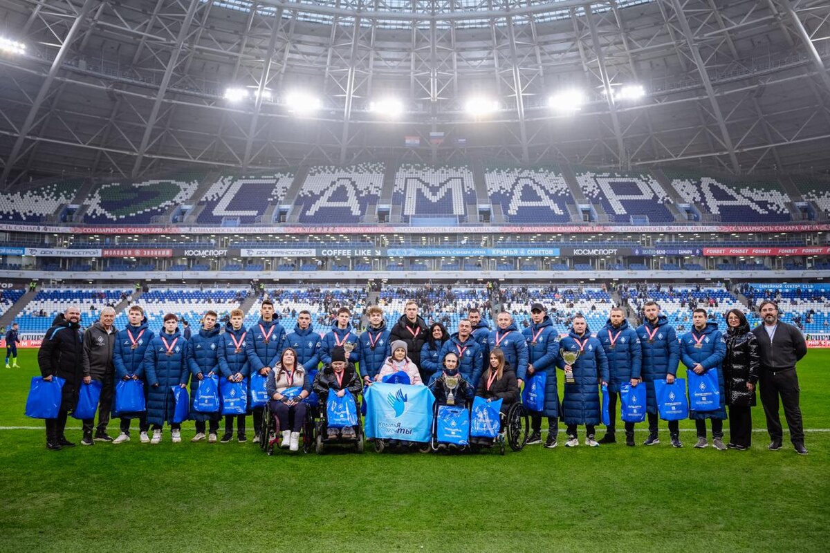 ⚽️«Крылья Советов» наградили футболистов подшефного клуба «Крылья Мечты» В перерыве матча с «Ростовом» Министр спорта Самарской области Лидия Рогожинская, генеральный директор клуба Тархан Джабраилов и заслуженный ветеран Валерьян Панфилов отметили команды «Крыльев Мечты», ставшие призёрами всероссийских турниров «Стальная воля» и «Лига Героев». 🙌 Команда «Крылья Мечты», представляющая Самарскую область, завоевала золото в турнире «Лига Героев» по футболу среди ветеранов СВО. 🥈В соревнованиях «Стальная воля» в дисциплине ПОДА-футбола на электроколясках «Крылья Мечты» стали серебряными призёрами. 🥉 Юношеская команда, представляющая область в дисциплине «футбол глухих» на «Стальной воле», заняла почётное третье место. 👏 Поздравляем с достижениями и всегда рады видеть на матчах!