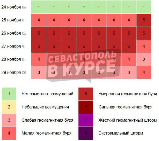 Метеозависимые, готовимся: очередная магнитная буря накроет Севастополь Начнется утром во вторник и продлится до конца недели, максимальная интенсивность ожидается в среду и четверг. При повышенной чувствительности к магнитным бурям рекомендуется избегать стрессовых ситуаций, больше отдыхать и соблюдать питьевой режим. ✈️Севастополь | Мы в MAX📲