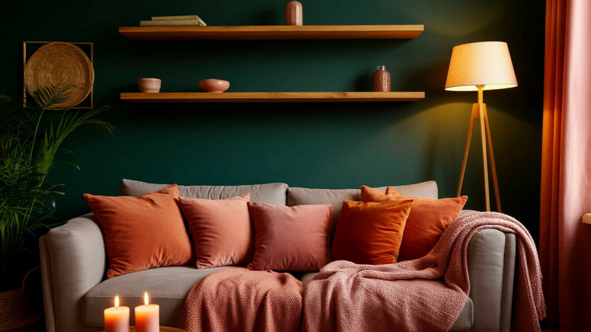 За окном снег, ранние сумерки и морозный воздух. В такие дни особенно хочется, чтобы дом становился настоящим убежищем — местом, где тепло и безопасно. Цвет способен создать нужную атмосферу буквально за несколько дней. Вам не нужен ремонт. Достаточно понять, какие оттенки работают зимой лучше всего. Глубокий зимний зеленый Представьте цвет хвойного леса в снегу. Темный, насыщенный, с легким холодным подтоном. Это не яркий летний зеленый. Он более спокойный и благородный. Такой цвет создает ощущение защищенности. Используйте его для акцентной стены в гостиной или кабинете. Покрасьте в этот цвет старый комод или книжные полки. Сочетайте его с натуральным деревом и текстурами вроде грубого льна или шерсти. На фоне такого зеленого золотистый декор и теплый свет ламп смотрятся особенно выигрышно. Этот цвет не кричит, он говорит спокойным, уверенным тоном. Он напоминает о вечнозеленых деревьях, которые не боятся мороза. Теплый терракотовый Зимой нам не хватает солнца. Терракотовый, кирпич