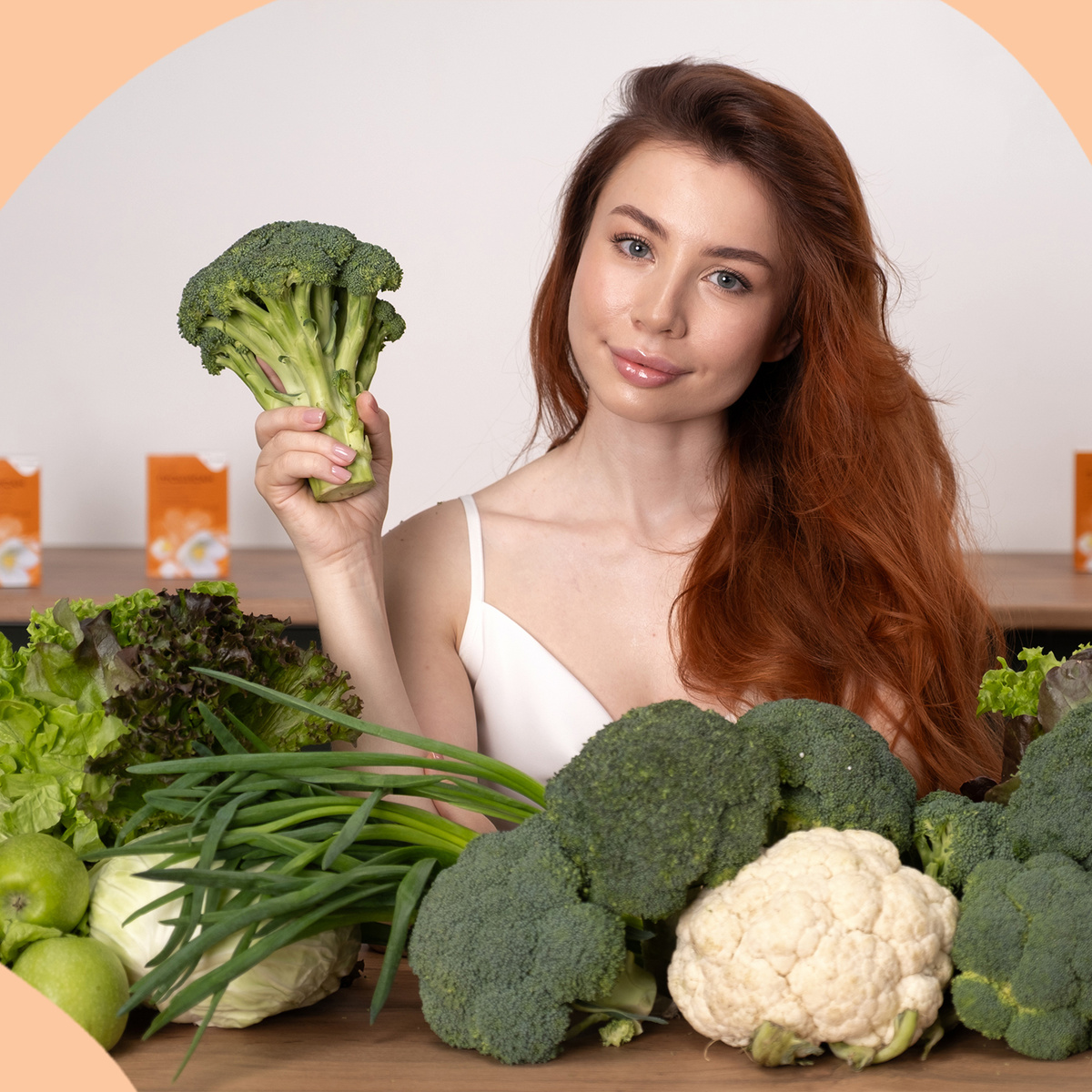 Включение в ежедневный рацион овощей, фруктов, ягод, трав способствует поддержке женского здоровья. Свежие овощи, ягоды и фрукты – источники не только полезной клетчатки, но и антиоксидантов, витаминов и микроэлементов. Они снижают воспалительные процессы, укрепляют иммунную систему и участвуют в синтезе гормонов. Овощи семейства крестоцветных – все виды капусты, редис, редька, репа, кресс-салат, шпинат, руккола содержат индолы⁵, защищающие клетки женской репродуктивной системы от повреждений⁵. Защите клеток от повреждений также способствуют катехины⁶, которые содержатся в садовых и дикорастущих ягодах и фруктах, особенно богат ими зеленый чай. Катехины имеют антиоксидантные свойства и способствуют выведению токсинов⁵.