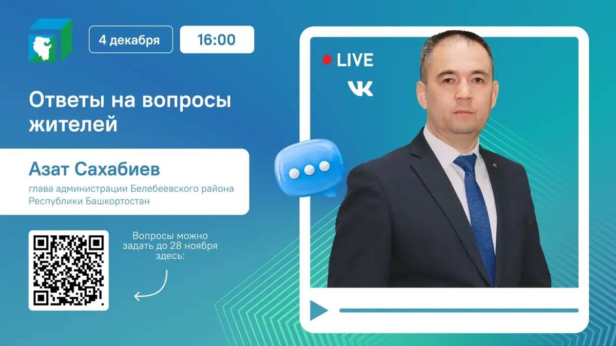 Глава администрации Белебеевского района Азат Сахабиев ответит на вопросы, которые беспокоят жителей. Прямой эфир из ЦУР Башкортостана пройдет 4 декабря в 16:00. Задать свои вопросы руководителю муниципалитета можно здесь: https://pos.gosuslugi.ru/lkp/direct-line/10761/