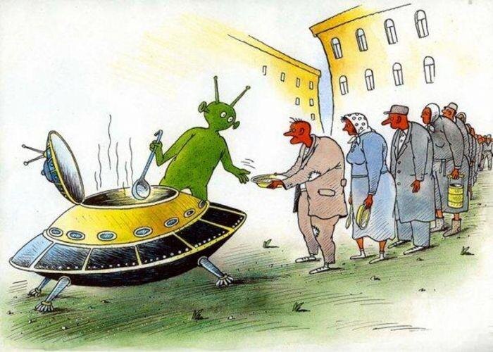 Хотя... знаю я нескольких человек, которых следовало бы сдать инопланетянам на опыты. Пообещать бессмертие, принять на корабль и - фюить! Обратно в глубины.