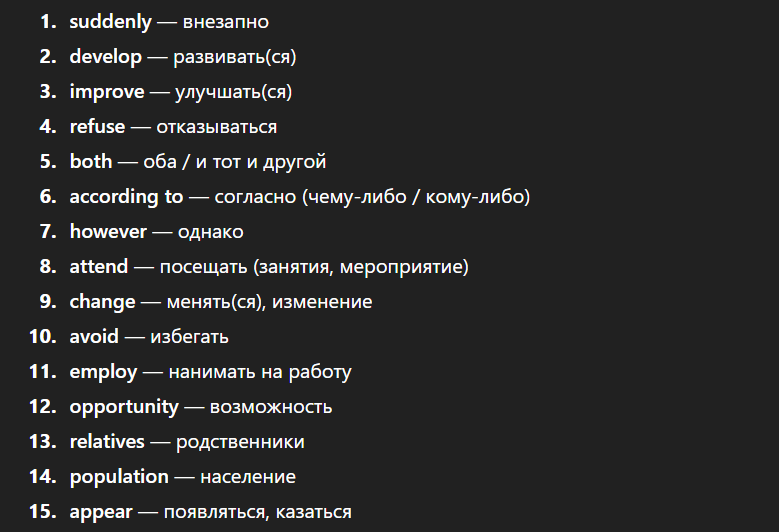 suddenly, develop, improve, refuse, both, according to, however, attend, change, avoid, employ, opportunity, relatives, population, appear
