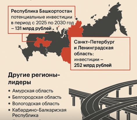 Регионы-лидеры по дорожным инвестициям — такие как Республика Башкортостан и Санкт-Петербург с Ленинградской областью — демонстрируют, как крупные инфраструктурные проекты выходят в фазу реализации. Их примеры позволяют увидеть, как федеральная политика, региональные стратегии и инвестиции соединяются в конкретных объектах: трассах, мостах, обходах.