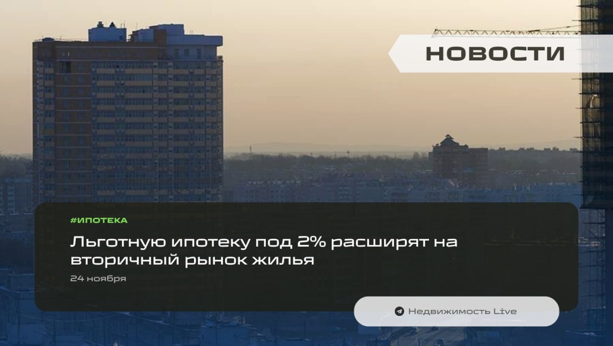 ⚡️ Льготную ипотеку под 2% расширят на вторичный рынок жилья — законопроект о распространении льготной программы на рынок вторичного жилья