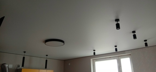 • кухни — скрывает возможные неровности и отчётливо не бликует от света. Плюс: на матовом полотне меньше заметны капли, отпечатки пальцев и любые мелкие дефекты.