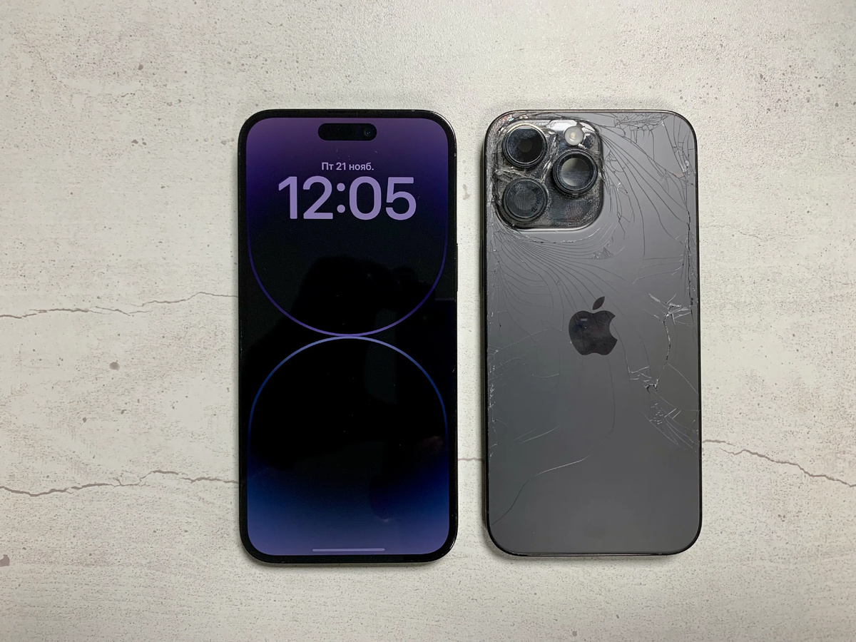 Поставили корпус с разбора и подлинный аккумулятор, чтобы телефон спокойно пережил школьные падения. Как всё началось Привет, я Денис, мастер по ремонту техники Apple в Воронеже. 24 ноября ко мне зашёл друг с iPhone 14 Pro Max. Задняя крышка была разбита — телефон упал, и стекло не выдержало. Он собирался передать аппарат сыну-школьнику. А значит, телефон будет жить в рюкзаке, на парте, на переменах и иногда на полу. Поэтому запрос был простой: сделать максимально надёжно. Что я увидел на приёмке Внешне всё было понятно сразу: — задняя крышка в трещинах — рамка уже с следами носки — внутри всё работало, но хотелось обновить аккумулятор перед передачей ребёнку Диагностика простым языком Проблема была чисто «механическая» — разбитая крышка после удара. Вопрос был в выборе пути ремонта. Можно поставить совместимую крышку, но они обычно слабее заводского стекла. Для ребёнка это риск: упадёт ещё раз — и снова трещины. Как проходил ремонт Я нашёл оригинальный корпус с разбора в нужном цвете
