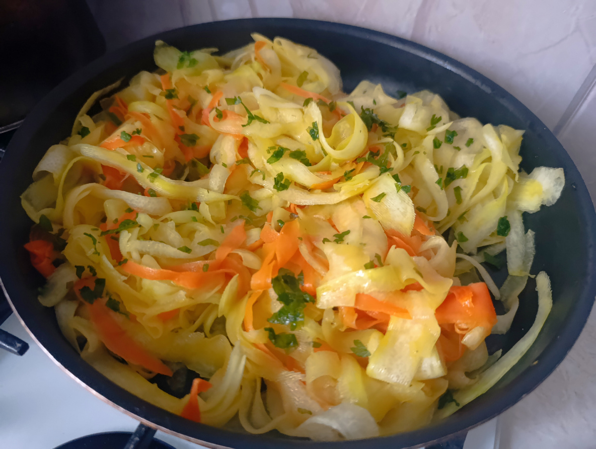 Здравствуйте! На днях я снова готовила. И готовила ТОЛЬКО из запасов. Ещё с вечера оценила обстановку в холодильнике, спланировала некоторые блюда и достала на разморозку необходимые продукты. Мне нужно было наготовить не на один день, потому что я предполагала (и как оказалось, верно) что меня выпишут и в среду я выйду на работу. Готовить после работы вечером я не люблю и не хочу, поэтому решила чуть больше времени провести на кухне сейчас, но освободить будничные вечера. Сначала я пристроила кабачок - приготовила кабачковую лапшу. Правда остались ещё кусочки кабачка, которые я уже не смогла овощечисткой порезать на лапшу, но я буду с ними что-то делать уже в другой раз. Потом я приготовила ежики. Впервые делала с рисом басмати. Посмотрите, какие они прикольные получились 😍 Ну, настоящие ежики🦔 Остатки риса отварила, использую как гарнир Второй вариант гарнира - отварные рожки Сделала картофельное пюре, пожарила рыбные котлеты Кое-чем из этого мы поужинали сразу, а основная масс