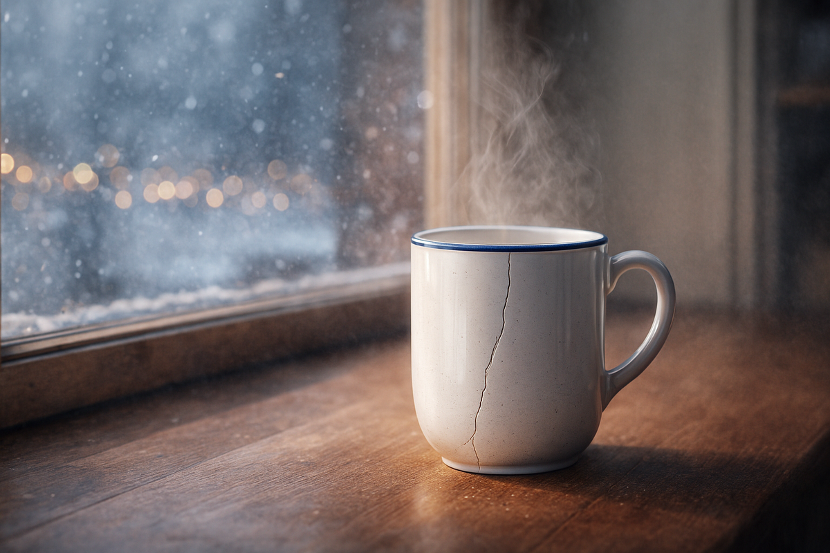 Трещина со временем стала не так заметна. Но каждый раз, когда Лёша брал кружку в руки, он чувствовал пальцем тонкий шов и вспоминал: отношения не рушатся из‑за трещин. Они рушатся, когда мы перестаём в них наливать тепло.