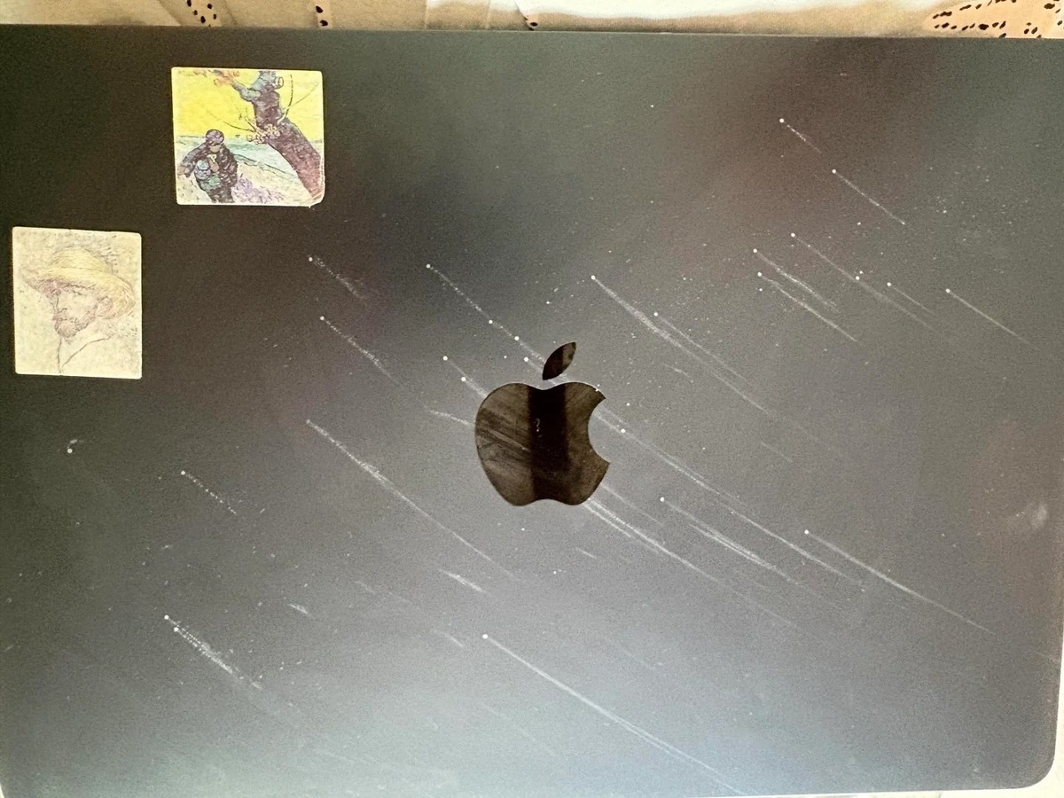 Владелец этого Макбука удивляется и не понимает откуда взялись эти пятна, которые ничем не убираются