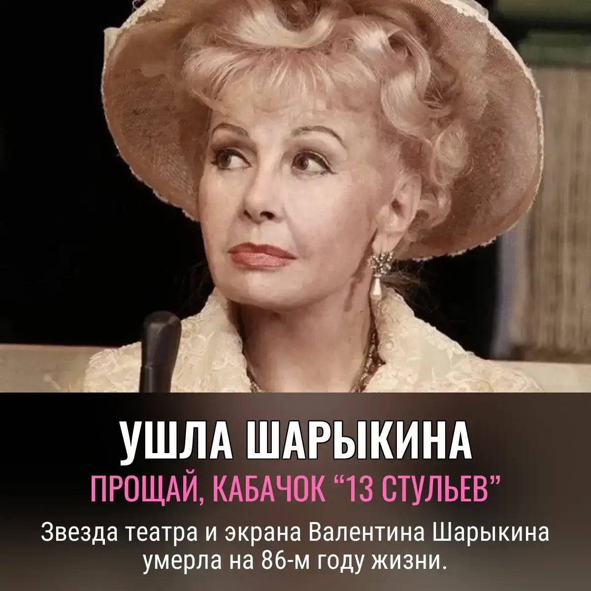 Верная спутница сатиры🕯— Валентина Шарыкина, без которой «Кабачок “13 стульев”» был бы просто закусочной, ушла из жизни. 70+ ролей, 60 лет у одного театра — только дворник столько не работает на одном месте! Душевность, щедрость, стабильность— вот что теперь втридорога на рынке актерских ценностей. Коллеги рыдают, зрители вспоминают зеркало эпохи. Вслед за ней — Элизабет Франц. Голливудская и российская легенды отправились гастролировать туда, где аплодисменты погромче., Следите за новостями 📩