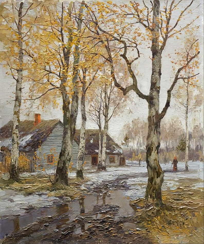 «Первый снег», конец XIX - начало XX вв. Холст, масло 57 x 48 см — Берггольц Ричард Александрович (1865-1920) 📍Самарский областной художественный музей Пейзажная живопись