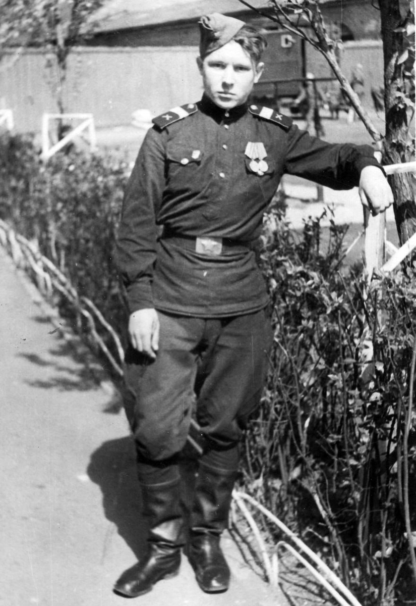 Старший сержант артиллерии в гимнастерке со съемными повседневными погонами образца 1943 года. Источник: отсканированная фотография из личной коллекции. #фото #артиллерий #сержант #Советская_армия