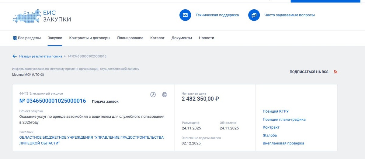 Управление градостроительства Липецкой области в лице и.о. начальника учреждения Виктории Кавериной объявило закупку по аренде автомобиля с водителем для служебного пользования в 2026 году. На эти цели готовы потратить почти 2,5 млн рублей. Из документов следует, что легковушка должна быть выпущена не раньше 2020 года, мощность ее двигателя должна составлять от 150 до 200 л.с. Российские производители автомобилей не выпускают машины с такими характеристиками, соответственно ищут иномарку. Есть у чиновницы и предпочтения по цвету кузова – он должен быть в гамме светлых оттенков. От будущего водителя требуют опрятный внешний вид, соответствующий служебным обязанностям. Ему предстоит работать 9 часов в день без перерыва на обед. При необходимости придется возить чиновницу в выходные и праздничные дни. Сам автомобиль необходим для служебных поездок по Липецку и области, а также в Москву и другие субъекты РФ. Из интересных требований к водителю: «Умение отрабатывать маршрут в условиях психо