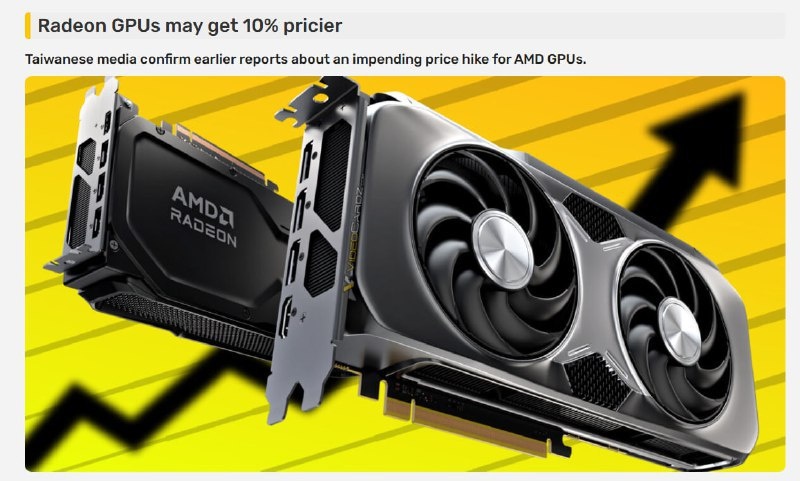 ⚡️ Теперь официально: Видеокарты AMD вырастут в цене на 10% со следующего года